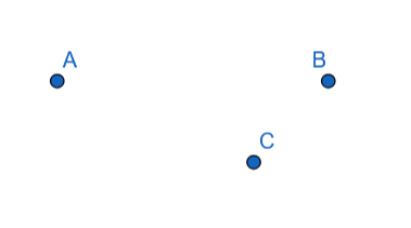 Narysuj dwa punkty A i B oraz wyznacz taki punkt C, aby figura składająca się z punktów A, B, C nie miała osi.
