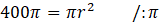 Oblicz pole powierzchni całkowitej stożka, którego wysokość wynosi 10 cm i powstał on po stopieniu 1000 mosiężnych kulek o promieniu równym 1 cm.