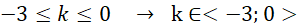 Dla wartości parametru k ∈ <–3 ; 0>.