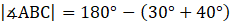 Teraz wyznacz kąt ABC korzystając z sumy kątów w trójkącie.