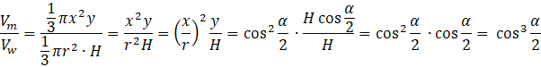 Masz udowodnić, że stosunek objętości stożka o podanym promieniu i wysokości do objętości stożka pokazanego na rysunku wynosi
