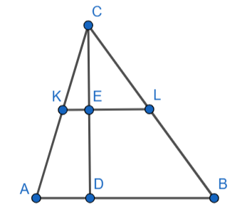 Wyznacz pole trapezu ABLK, jeśli w trójkącie ABC, w którym poprowadzono prostą równoległą do AB przecinającą bok AC w punkcie K i bok BC w punkcie L. Odcinek KL ma długość 12, a wysokość CE trójkąta KLC jest równa 15.