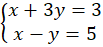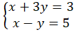 Oblicz x z pierwszego równania i podstaw je do drugiego: