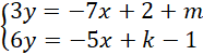 Proste mają różne współczynniki kierunkowe, które są niezależne od parametrów k i m.