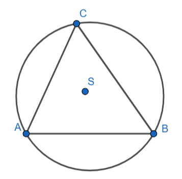 Wyznacz kąty trójkąta ABC, jeśli punkt S jest środkiem okręgu opisanego na trójkącie ostrokątnym ABC. Kąt ACS jest trzy razy większy od kąta BAS, a kąt CBS jest dwa razy większy od kąta BAS.