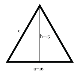 W trójkącie równoramiennym długość podstawy wynosi 16 cm, a wysokość poprowadzona na tę podstawę jest równa 15 cm. W tym zadaniu musisz obliczyć wysokość poprowadzoną na ramię trójkąta.