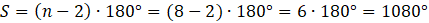W tym zadaniu musisz obliczyć sumę miarę kąta wewnętrznego podanej figury – ośmiokąta foremnego.