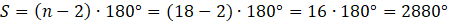 W tym zadaniu musisz obliczyć sumę miarę kąta wewnętrznego podanej figury – osiemnastokąta foremnego.