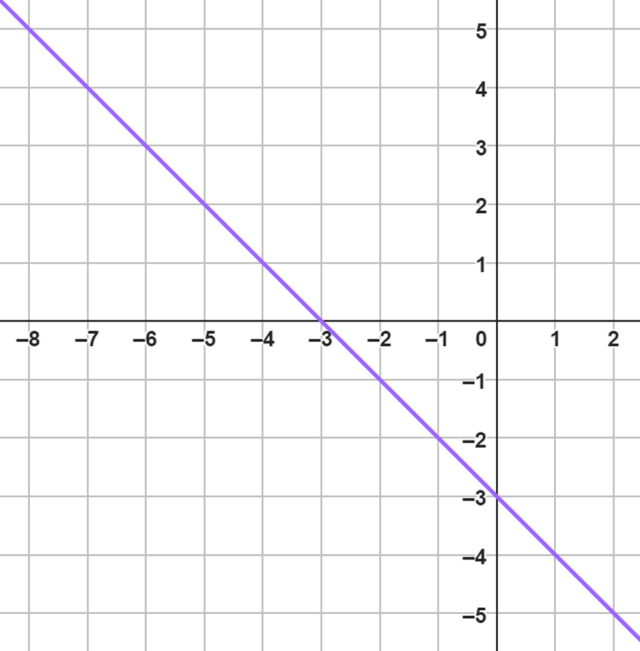 Na wykresie miejsca zerowe to argumenty, dla których wykres funkcji przecina oś OX. Narysujmy więc wykres, który rozciąga się w nieskończoność wzdłuż osi OX i przecina ją dla argumentu -3.