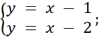Podaj przykład narysowanych funkcji. Rozwiązaniem układu jest punkt, w którym obie funkcje się przecinają.
