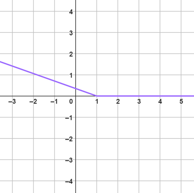 Na wykresie miejsca zerowe to argumenty, dla których wykres funkcji przecina oś OX. Aby miejsca zerowe były podanym przedziałem to wykres ten musi leżeć dokładnie na osi OX od argumentu 1 włącznie aż do dodatniej nieskończoności. Dodatkowo wykres ten musi rozciągać się w nieskończoność wzdłuż osi OX. Narysujmy taki wykres.
