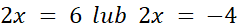 Rozwiąż podane równania pamiętając, że wartość bezwzględna liczby to jej odległość od zera na osi liczbowej. Wartość bezwzględna nie może być liczbą ujemną.