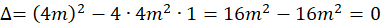 Zauważ, że dla m = 0 równanie będzie równaniem sprzecznym, a dla pozostałych wartości będzie równaniem kwadratowym. Zacznij od obliczenia delty. Delta jest równa zero, więc jest jedno rozwiązanie.