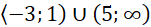 Na wykresie miejsca zerowe to argumenty, dla których wykres funkcji przecina oś OX. Aby miejsca zerowe były sumą podanych przedziałów to wykres ten musi leżeć dokładnie na osi OX od argumentu -3 włącznie do argumentu 1 oraz od argumentu 5 aż do dodatniej nieskończoności. Poza tym musi on rozciągać się w nieskończoność wzdłuż osi OX. Ze względu na otwarte nawiasy stosowane przy zapisie tej sumy przedziałów, w odpowiednie miejsca musimy wstawić punkty puste w środku. Narysujmy zatem taki wykres dzieląc go na osobne części.