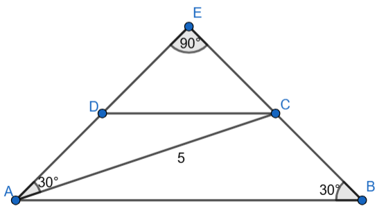 Skorzystaj z funkcji trygonometrycznych w trójkątach ABE, ACE i DCE, aby obliczyć przyprostokątne trójkątów prostokątnych, a następnie pole trapezu.