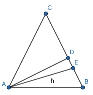 Oblicz tangens kąta DAB, jeśli w trójkącie równobocznym ABC poprowadzono odcinek AD taki, że punkt D leży na boku BC. Stosunek pola trójkąta ADC do pola trójkąta ADB jest równy 1:3.