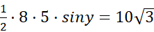 Oblicz sinus kąta ze wzoru na pole trójkąta: