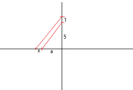 Rysujemy na osi x odcinek a. Na osi y rysujemy odcinek 5, a nad nim odcinek 1. Łączymy koniec odcinka a z końcem odcinka 5. Rysujemy równoległy odcinek zaczynający się na końcu odcinka 1 i kończący się na osi x. Na osi x powstał odcinek o długości x. Jest on szukanym odcinkiem.