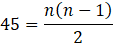 W tym zadaniu musisz wyznaczyć n, dla których suma wszystkich odcinków łączących te punkty wynosi 45.