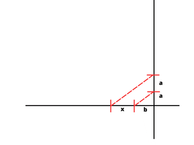 Rysujemy na osi x odcinek b. Na osi y rysujemy odcinek „a”, a nad nim odcinek „a”. Łączymy koniec odcinka b z końcem odcinka „a”. Rysujemy równoległy odcinek zaczynający się na końcu drugiego odcinka „a” i kończący się na osi x. Na osi x powstał odcinek o długości x. Jest on szukanym odcinkiem.