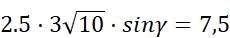 Oblicz sinus kąta przy podstawie ze wzoru na pole trójkąta: