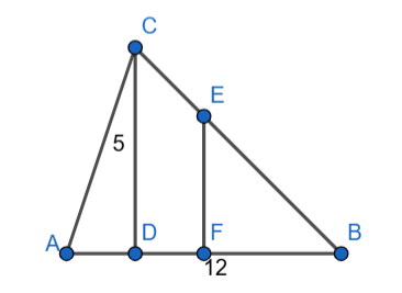 Skorzystaj z tego, że jeśli trójkąty są podobne w skali , to ich pola są podobne w skali . Następnie skorzystaj z podobieństwa trójkątów przedstawionych na rysunku i ze stosunku odpowiadających sobie boków długość odcinka EF