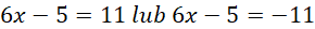 Równanie to jest spełnione, jeśli wyrażenie wewnątrz wartości bezwzględnej jest liczbą przeciwną lub równą 11, zatem: