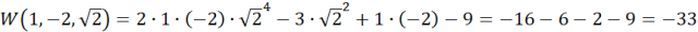 Musisz podstawić podane wartości zmiennych do wielomianu oraz obliczyć jego wartość.