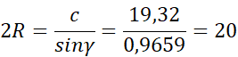 , R – to długość promienia okręgu opisanego na trójkącie.