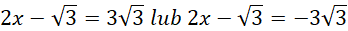 Równanie to jest spełnione, jeśli wyrażenie wewnątrz wartości bezwzględnej jest liczbą przeciwną lub równą