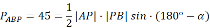 Znajdź, ile wynosi sin α. Oblicz pole ze wzoru: