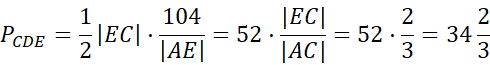 . Następnie oblicz na podstawie pól trójkątów stosunek boku b do c i oblicz pole trójkąta CDE.