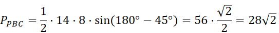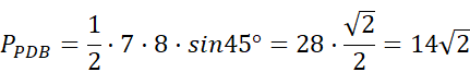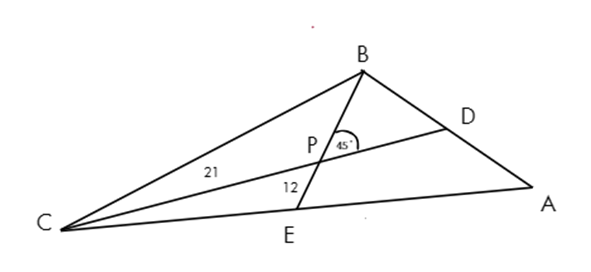 Środkowe CD i BE trójkąta ABC przecinają się pod kątem 45°, jak na rysunku obok. |BE| = 12 cm oraz |CD| = 21 cm. W tym zadaniu musisz obliczyć pole trójkąta ABC.