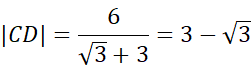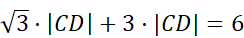 Dwa boki trójkąta ABC mają długość: |AC| = 4, |BC| = 6, a kąt ACB ma miarę 150°. Przez wierzchołek C poprowadzono prostą prostopadłą do boku BC, która przecięła bok AB w punkcie D. W tym zadaniu musisz obliczyć długość odcinka CD.