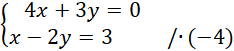 Musisz doprowadzić oba równania do takie postaci, by ich suma całkowicie zredukowała jedną z niewiadomych.