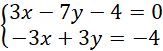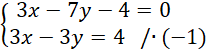 Musisz doprowadzić oba równania do takie postaci, by ich suma całkowicie zredukowała jedną z niewiadomych.