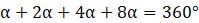 Wszystkie kąty dadzą miarę 360°. Oblicz