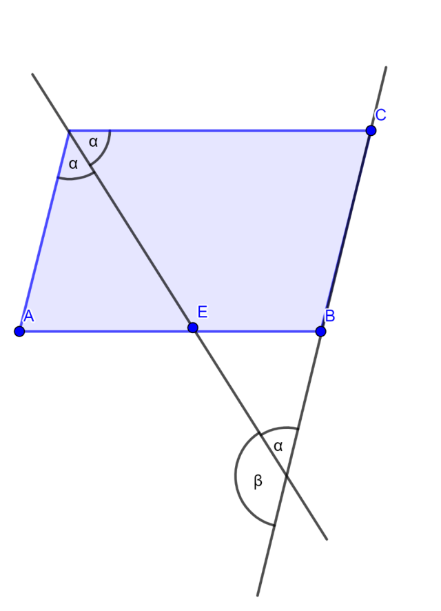 W równoległoboku suma miar kątów leżących przy tym samym boku wynosi 180°. Policz kąt przy wierzchołku A.