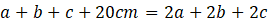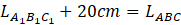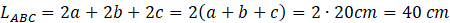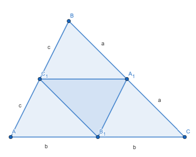Połączono środki boków trójkąta ABC, tworząc trójkąt A₁B₁C₁. Obwód trójkąta A₁B₁C₁ jest o 20 cm mniejszy od obwodu trójkąta ABC. Oblicz obwód trójkąta ABC.