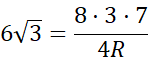 Oblicz promień okręgu opisanego na trójkącie ze wzoru na pole trójkąta