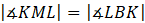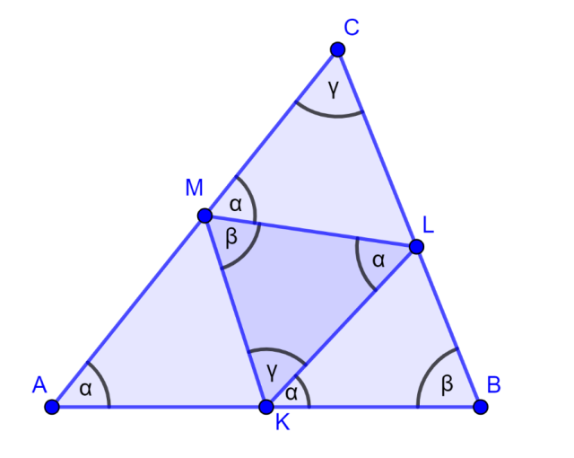 Kąty trójkąta KLM są równe kątom trójkąta ABC.