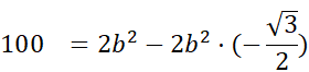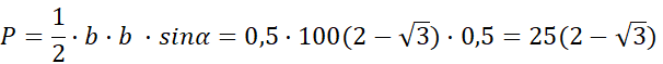 Promień okręgu opisanego na trójkącie równoramiennym jest równy 10. Kąt między ramionami jest równy 150°. W tym zadaniu musisz obliczyć pole tego trójkąta.