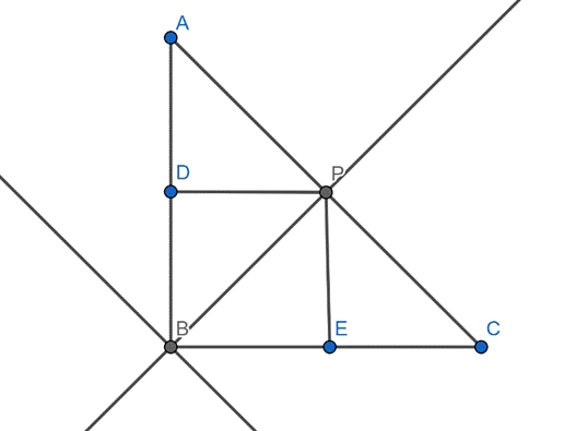 Zauważ, że APK to trójkąt równoramienny, a DPEB to kwadrat. Skorzystaj z twierdzenia Pitagorasa, aby obliczyć długość x, czyli odległość punktu P od wierzchołka kąta.