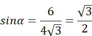 W trójkącie równoramiennym rozwartokątnym najdłuższy bok ma długość 6. Promień okręgu opisanego na tym trójkącie jest równy 2√3.W tym zadaniu musisz obliczyć miary kątów trójkąta.