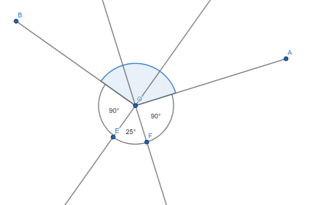 W tym zadaniu musisz wskazać miarę kąta AOB, wiedząc, że proste przechodzące przez jego wierzchołek i prostopadłe do jego ramion tworząc kąt o mierze