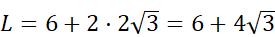 W trójkącie równoramiennym rozwartokątnym najdłuższy bok ma długość 6. Promień okręgu opisanego na tym trójkącie jest równy 2√3.W tym zadaniu musisz obliczyć obwód tego trójkąta.
