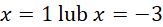 1 nie pasuje do wcześniejszego założenia, zatem jedyne miejsce zerowe tej funkcji to -3.