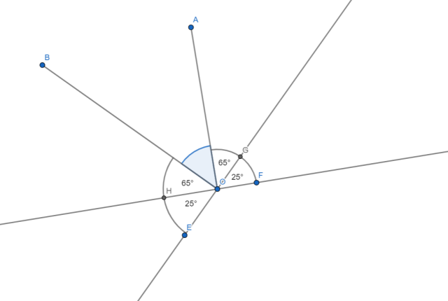 W tym zadaniu musisz wskazać miarę kąta AOB, wiedząc, że proste przechodzące przez jego wierzchołek i prostopadłe do jego ramion tworząc kąt o mierze