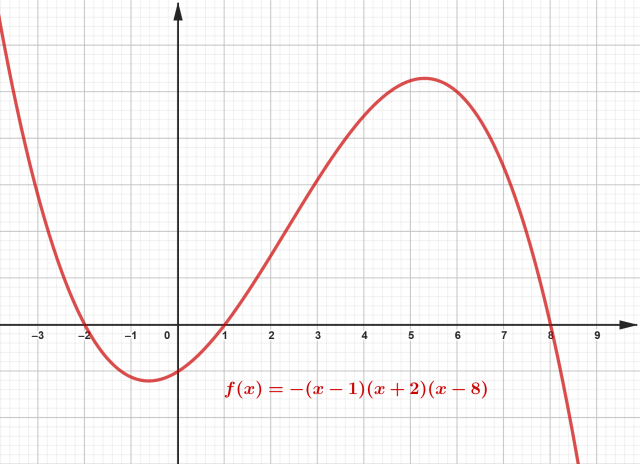 3. Prowadź funkcję tak, aby przecinała oś w miejscach, w których posiada ona pierwiastki, pamiętając, że gdy krotność pierwiastki jest nieparzysta, to przecinamy oś, a gdy jest parzysta – odbijamy wykres od osi.