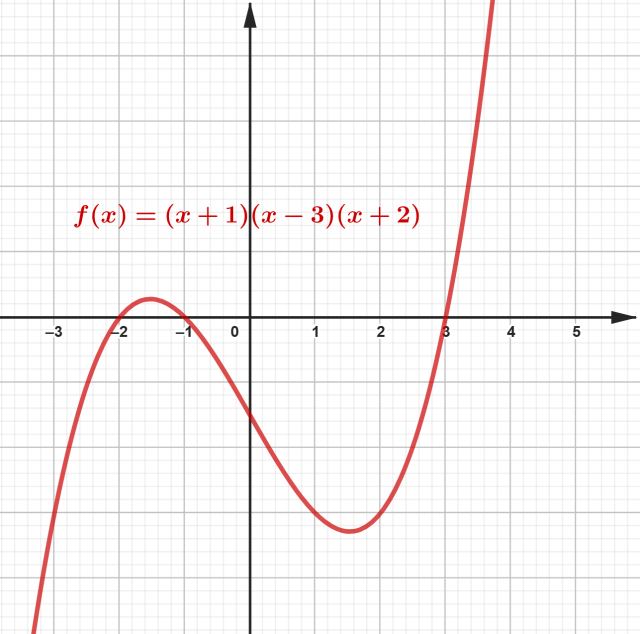 3. Prowadź funkcję tak, aby przecinała oś w miejscach, w których posiada ona pierwiastki, pamiętając, że gdy krotność pierwiastki jest nieparzysta, to przecinamy oś, a gdy jest parzysta – odbijamy wykres od osi.
